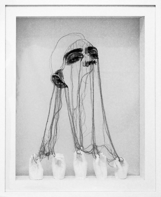 I love it when I procrastinate online and discover someone's work that really catches my attention. Filipina artist Eugenia Alcaide captures her subjects by sewing their impressions on silkscreens. Though created with black cotton thread, the lines look like intricate sketches of graphite with 3D feel. They're captivating, and I wish there was a video to go with these to see how she plots each piece from start to finish.
